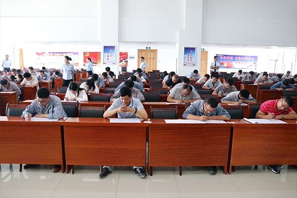今年的筆試考卷由臨沂大學商學院老師出題,行政管理和生產管理兩大序列的考題為一套試卷,囊括了安全、節能環保、供銷、生產等多方面知識,所考題庫在一周前由人力資源部下發至每名參考人員進行先期學習。筆試考卷在考試前一個小時由專人負責從臨沂大學運送至考場,現場開封和發放。試題類型分為選擇題、判斷題、填空題、簡答題、案例分析題五個類型。全面考核了競聘員工們的綜合知識儲備、日常工作素養、管理方法和邏輯思維方式,旨在為集團選拔一批綜合素質優秀、培養潛力突出的復合型人才。